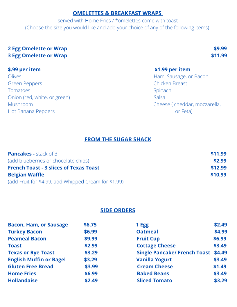Welcome to Debb's Place, your cozy retreat located at 352 Huronia Rd, Barrie, ON. This charming eatery boasts a homestyle menu that honors comfort food with a twist. Start your day with delicious offerings from The Sugar Shack, featuring fluffy pancakes for CA$11.99 and decadent Belgian waffles at CA$4.99. Don't miss their crowd-favorite French toast, made on Texas toast, for just CA$2.99.